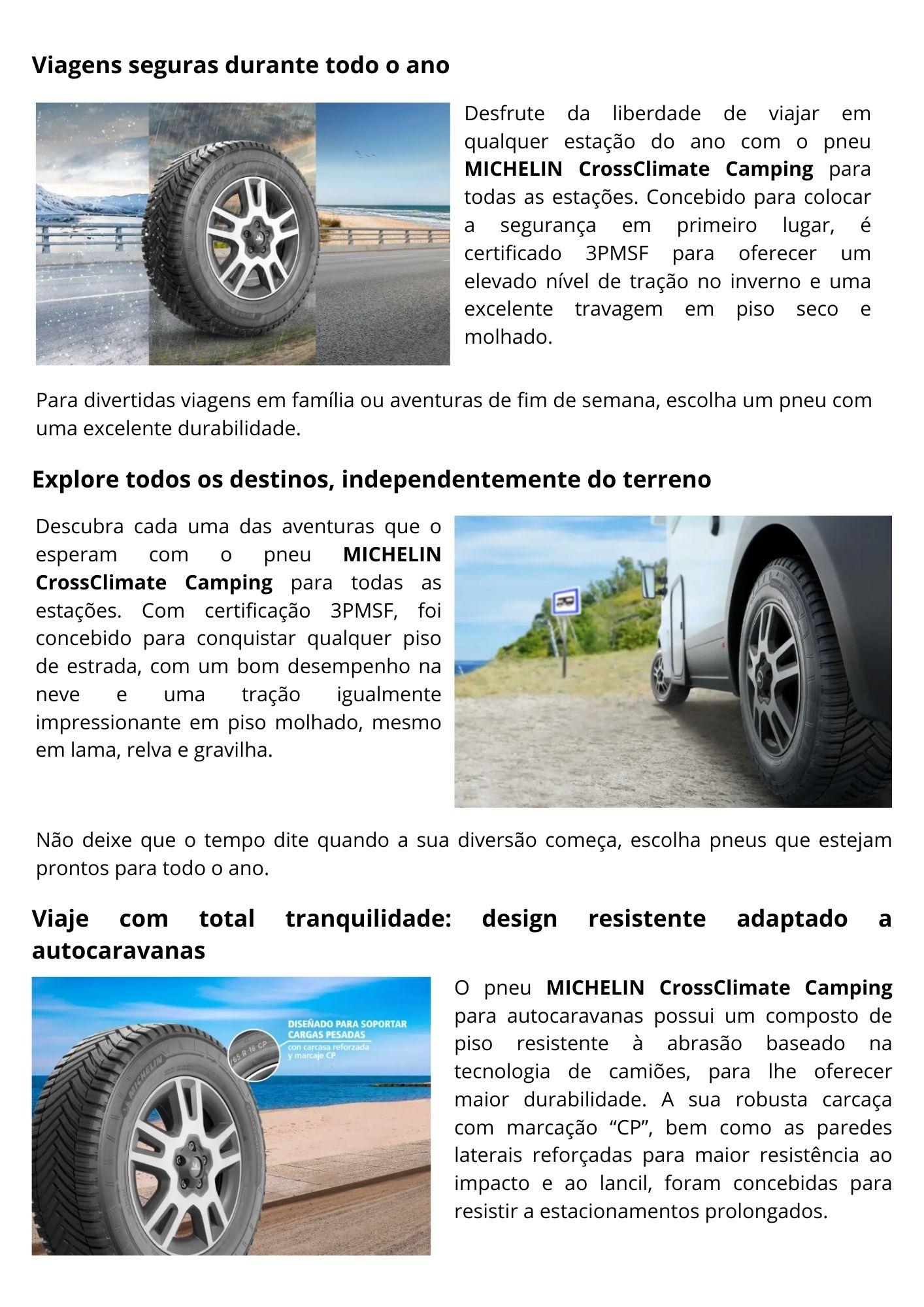 Desfrute de aventuras durante todo o ano com o exclusivo pneu MICHELIN CrossClimate Camping 215/75 R16CP 113/111R. Pneu de alto desempenho projetado para oferecer a máxima segurança em todas as superfícies.