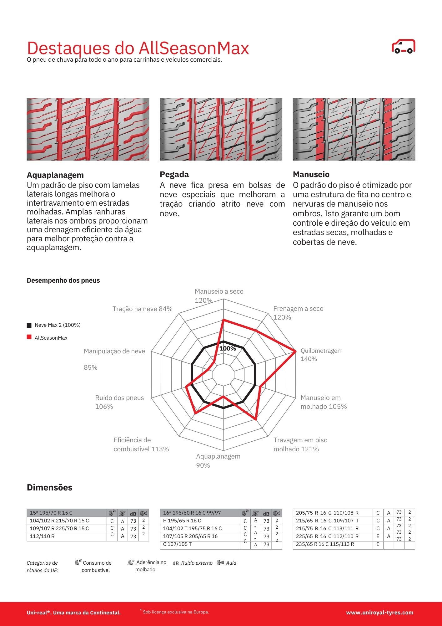 O pneu Uniroyal 195/70 R15C 104/102R ALLSEASONMAX é um pneu para quatro estações concebido para carrinhas.